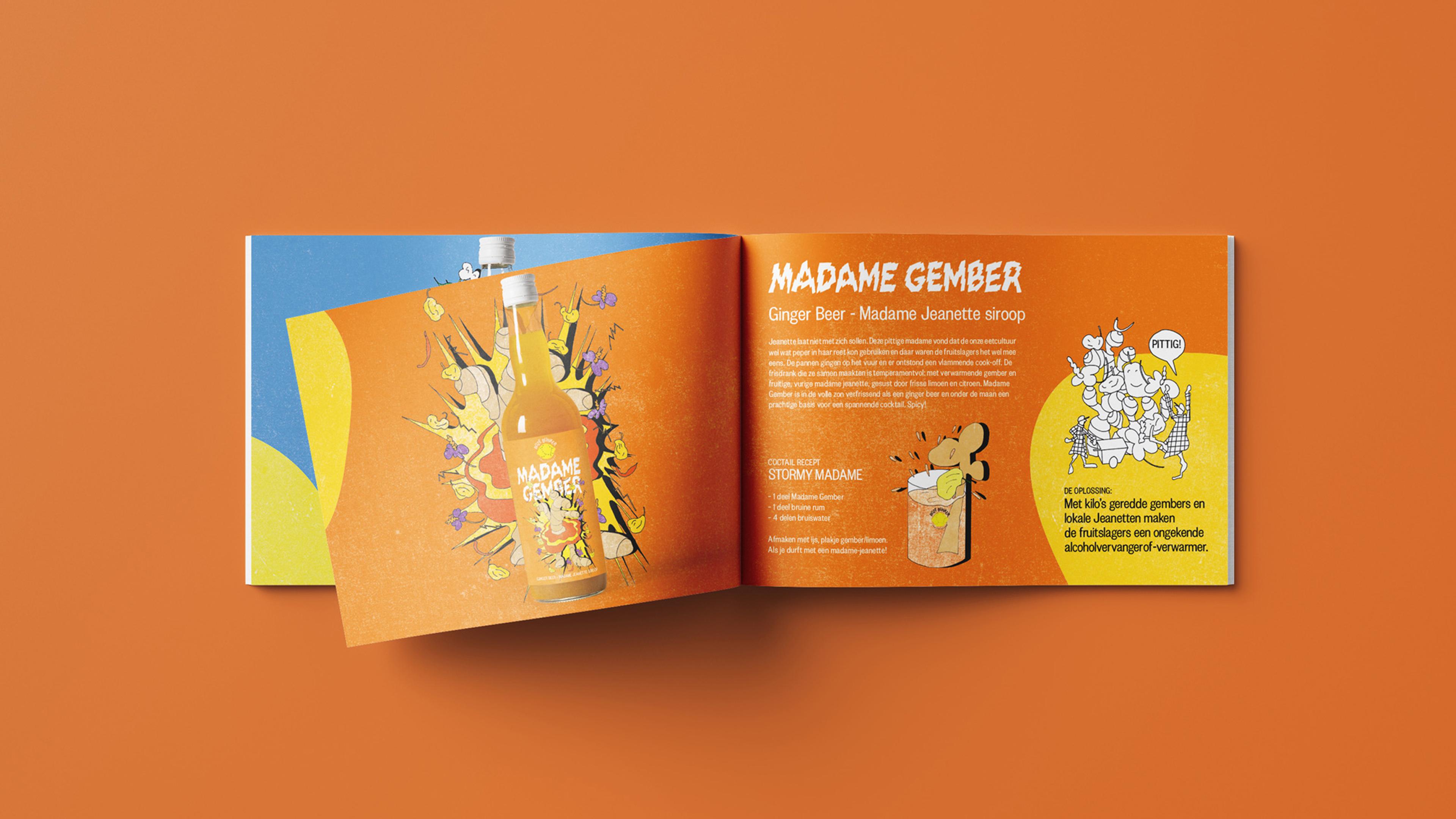 We developed bold and playful branding and label designs in collaboration with illustrator Melanie Corre, whose recognizable style brought their story to life. For the website, they wanted a standout design—not a typical product showcase but something engaging and unique. We delivered a site where bottles tumble onto the screen, offering a fun, interactive experience.